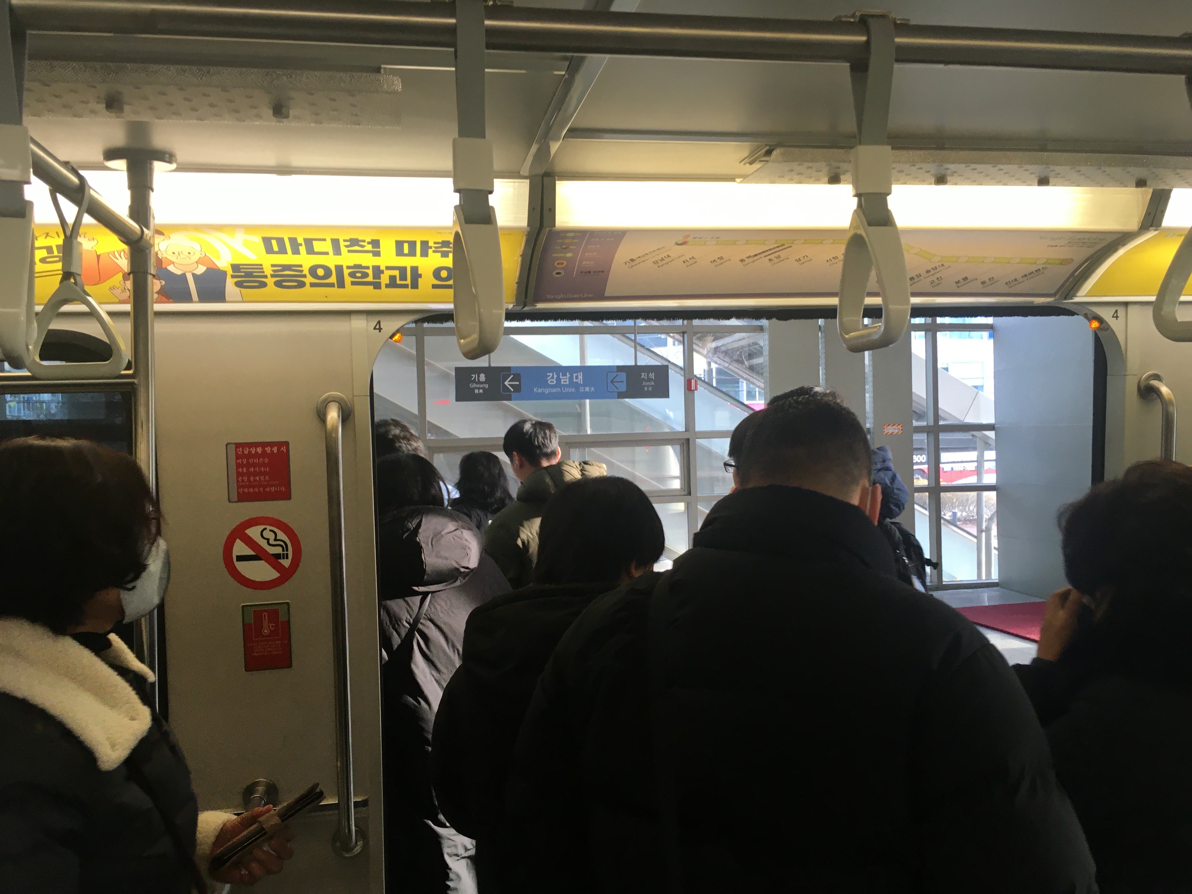 지금까지 경전철 이용 하면서 처음 경험하는 것 같고, 수동운전을 하다보니 가끔씩 승객들이 쏠리기도 하지만 모두가 이 상황을 서로 이해하고 몇 정차역 몇 미터 앞에서 대부분 스마트폰으로 지인들에게 소통하고 있다.