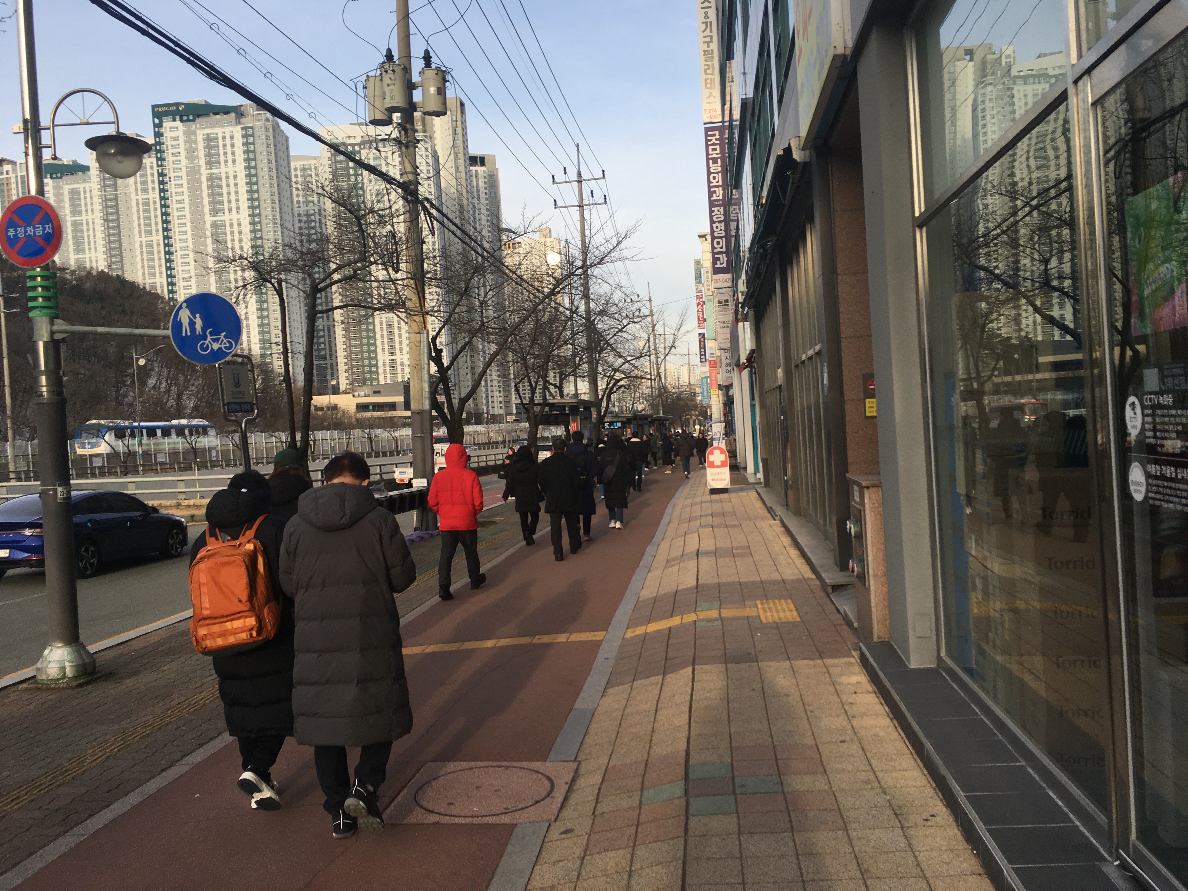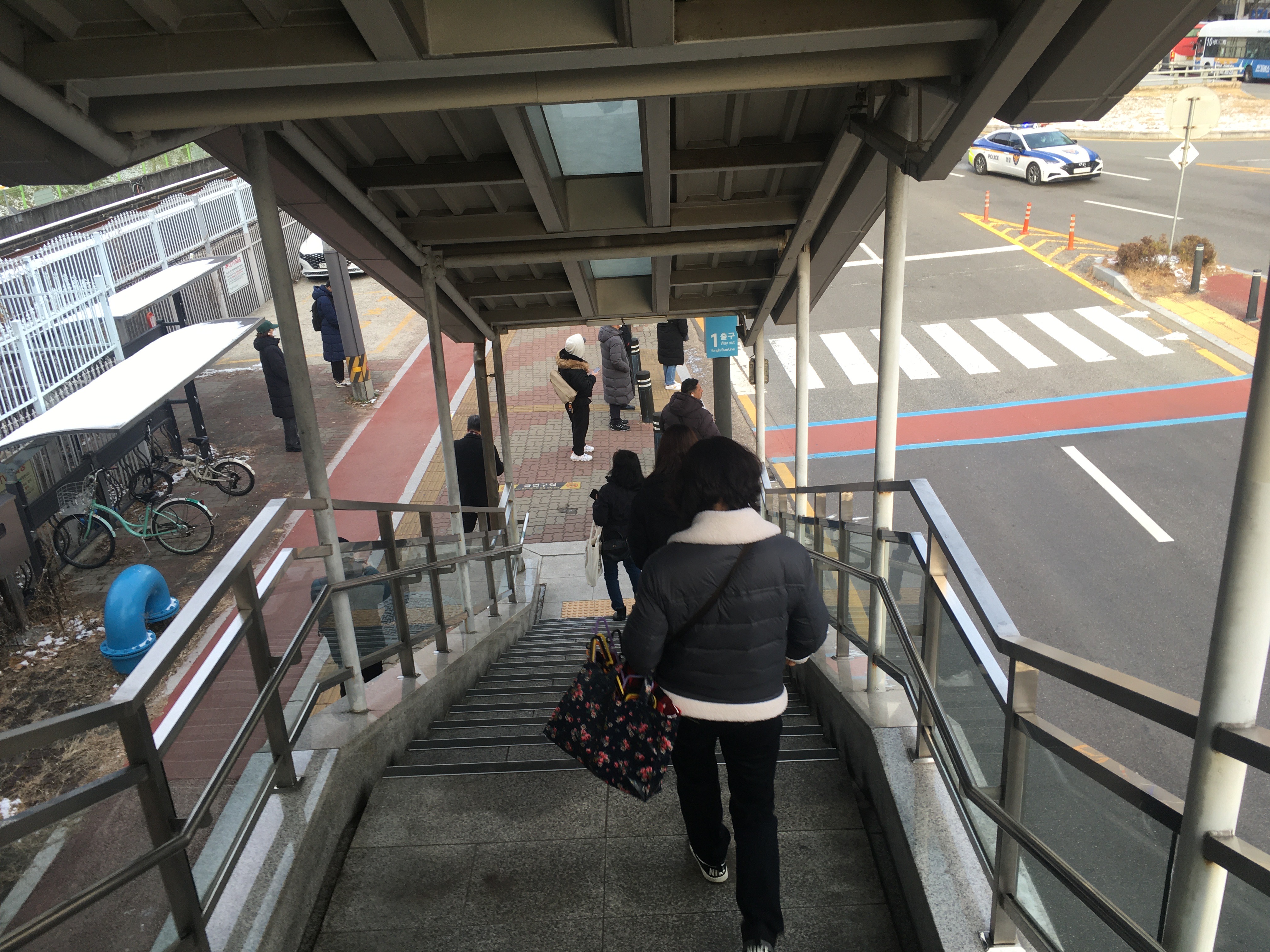 모두 서둘러 경전철에서 내려서 분주하게 역사를 빠져나가고 버스를 타기위해 건너편 정류장으로 이동하고있다. 그리고 적지 않은 사람들은 게시되어있는 안전 점검표를 하나 둘 촬영하고 직원의 환불조치에 대해 간단히 듣고, 버스를 타기 위해 각자 직장을 향해 가고있다.